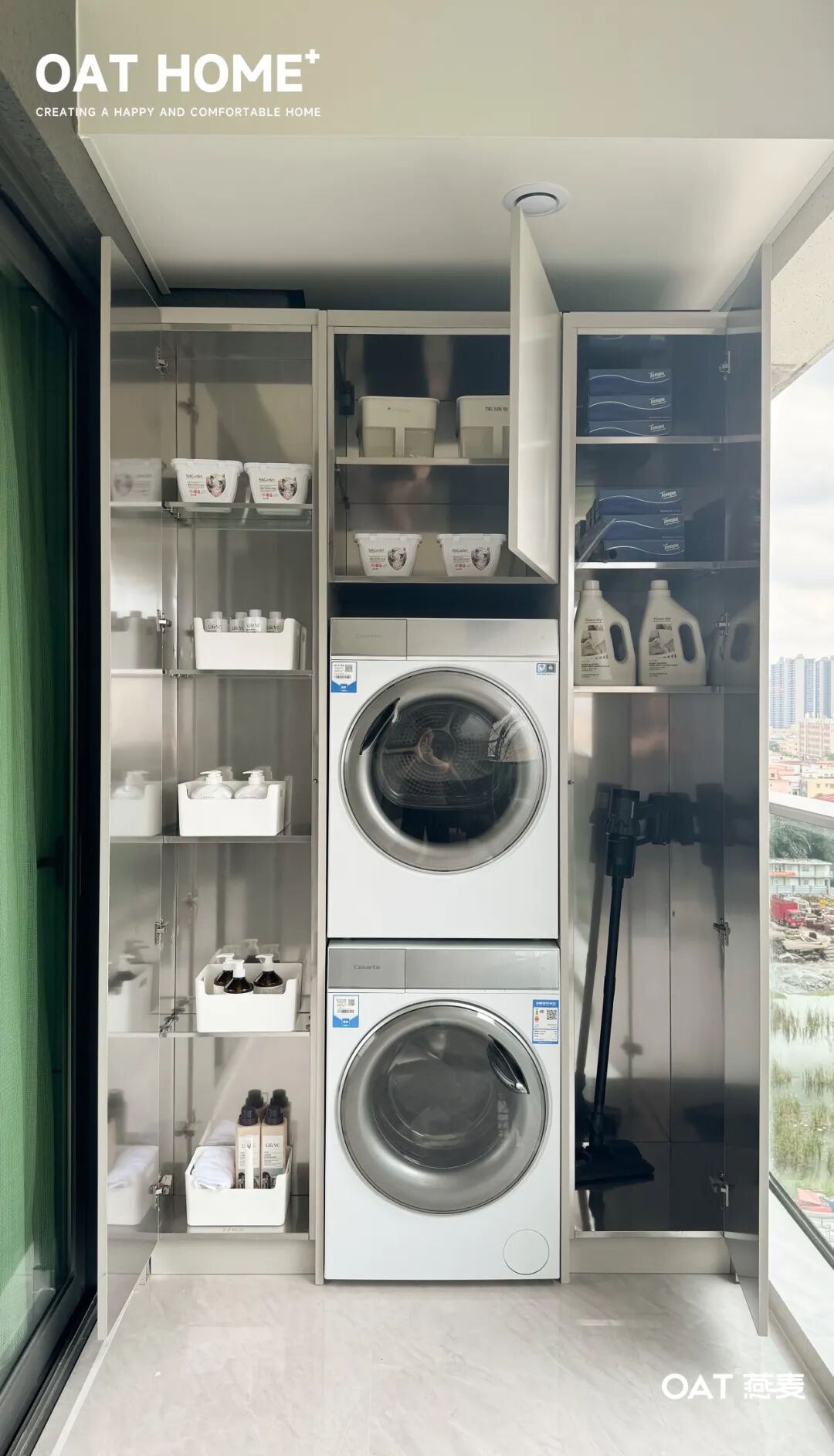 极致简约的阳台柜设计,巧妙地隐匿了家务的琐碎,赋予阳台更大的空间,也延展出更多的可能。