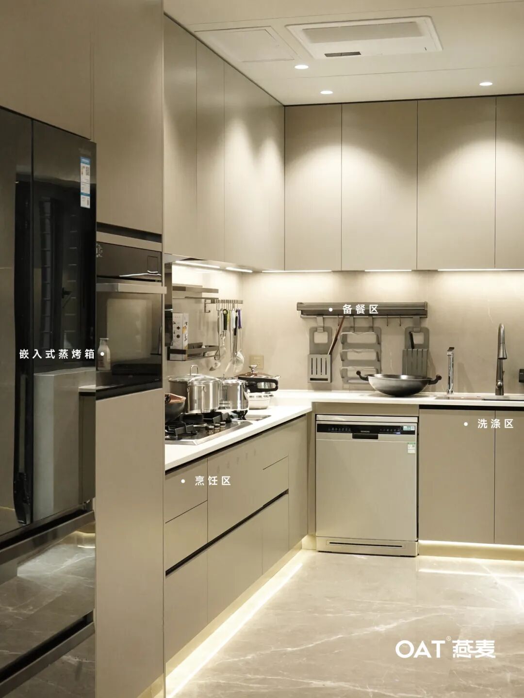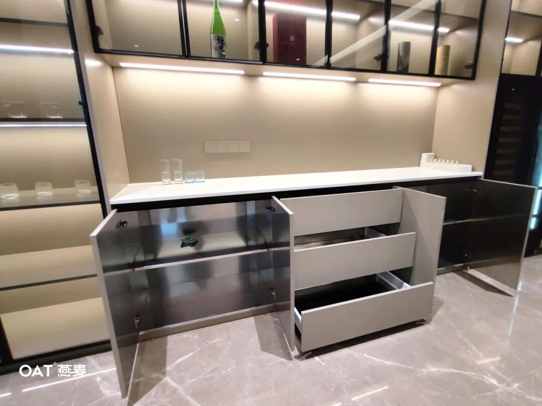 在整个设计中,不锈钢橱柜